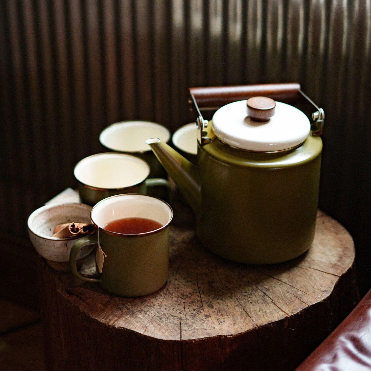 Camp coffee. Herbal tea. Hot chocolate. Hot Toddys. Whatever you’re dreaming of warming up with, this improved 2-tone enamel kettle & mug set promises to help you set the mood and sink into the moment. A beautiful statement piece for your camp collection or kitchen counter and a thoughtful gift for tea lovers in your life.