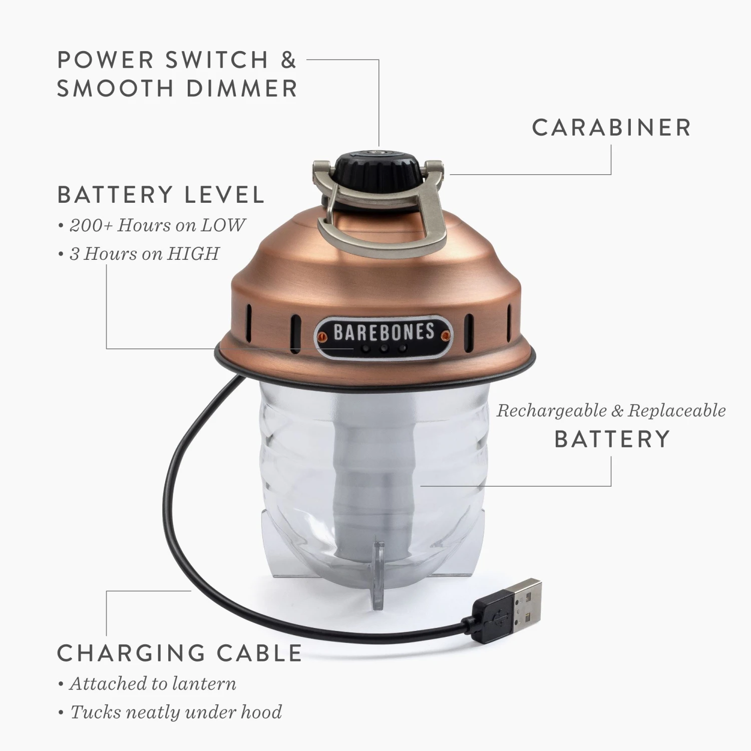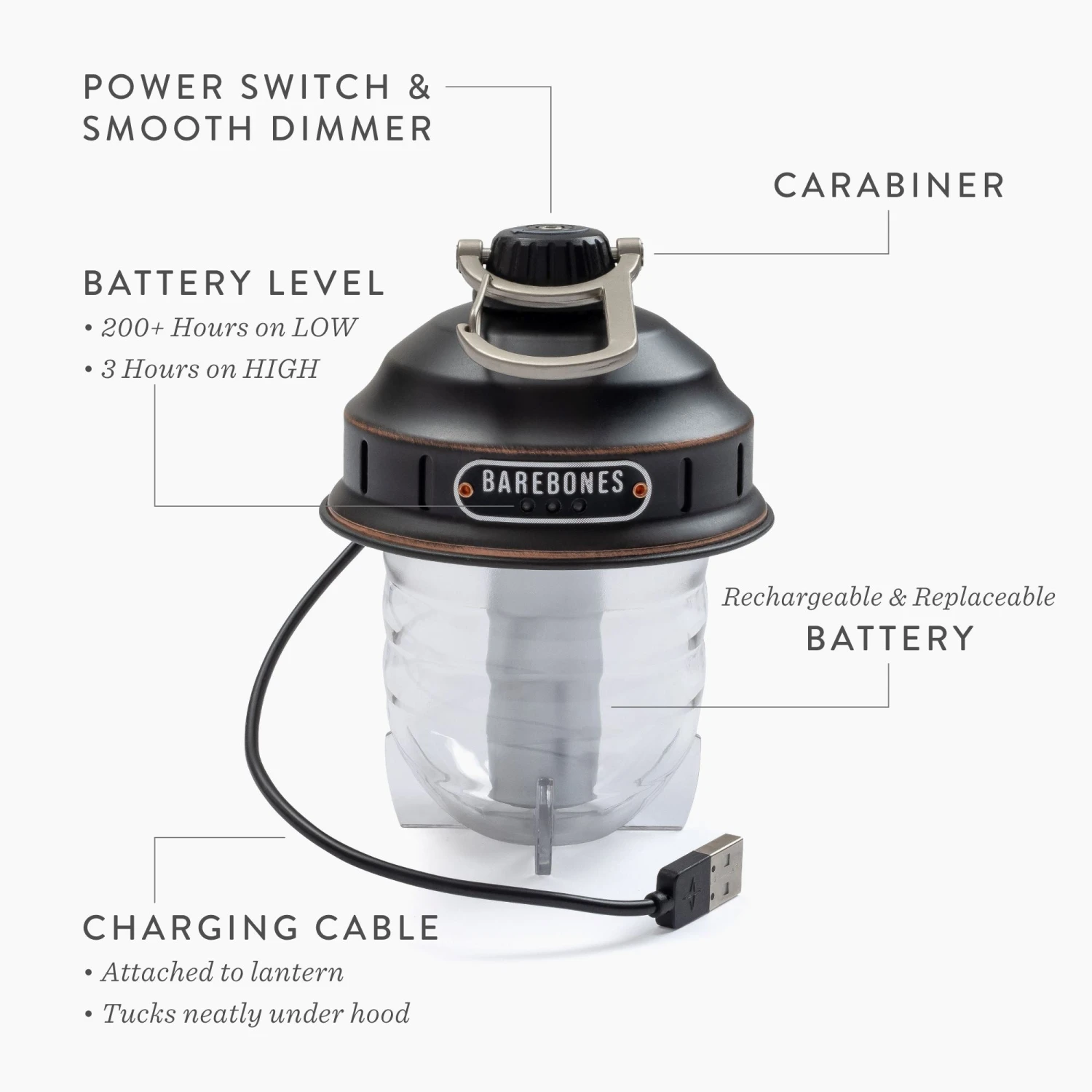 The Beacon Hanging Light is our go-to camp and adventure lantern. This portable light easily hangs with its carabiner top or stands on its sturdy base, and a smooth dimming feature brightens your surroundings & sets the mood. This small lantern comes with an attached 9-inch USB cord and an additional 35-inch cord for its rechargeable battery—which lasts 200+ hours on low or three hours on high. And thanks to a convenient battery life indicator, you’ll never be left in the dark.