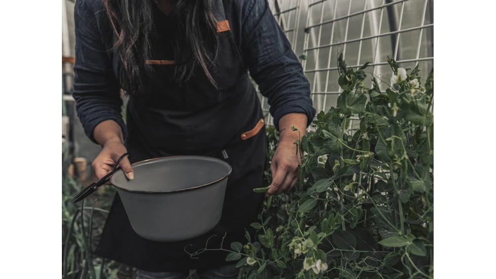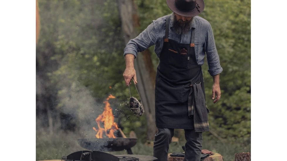 The only Chef Apron youll ever need. Designed with direct input from our chef partners Jared and Mona of Tournant PDX, this modern and durable garment features unique, useful details specific to open fire cooking. Heavy-duty cotton construction means years of use, and added front pocket keeps phone, pen, or thermometer always handy. Adjustable cross back fits all types of bodies for a true one size fits all.![]()