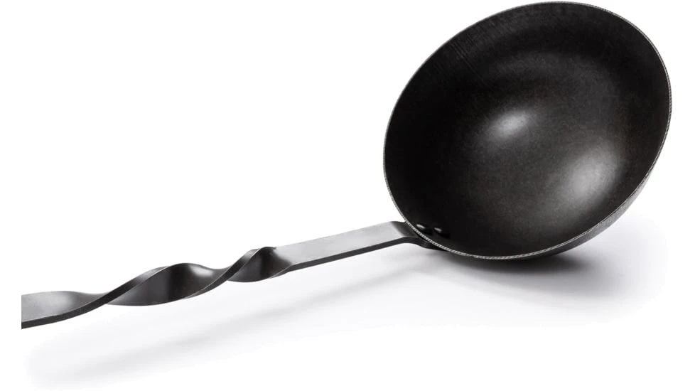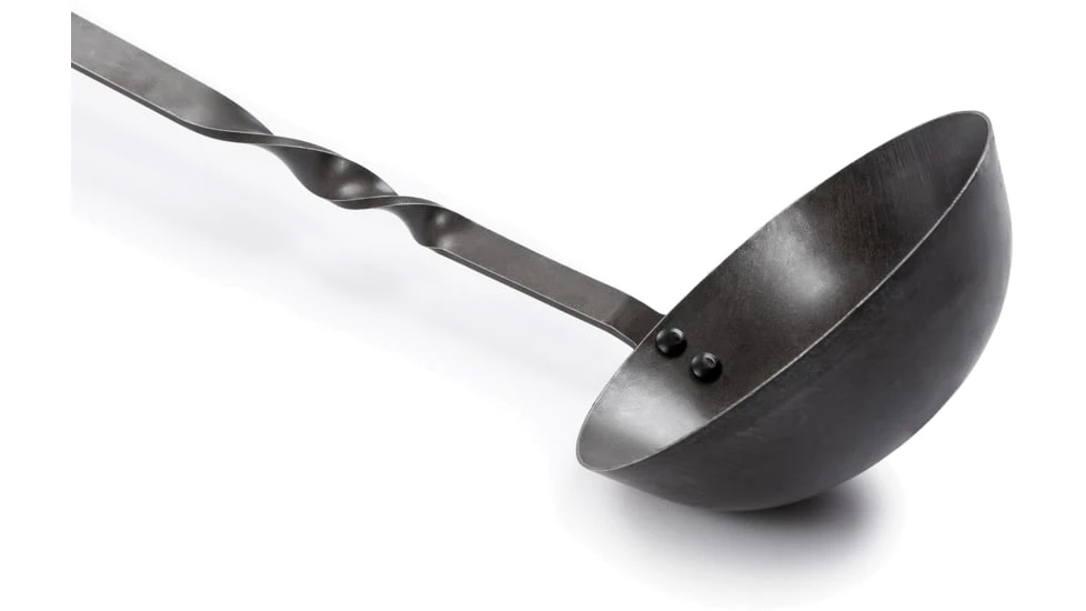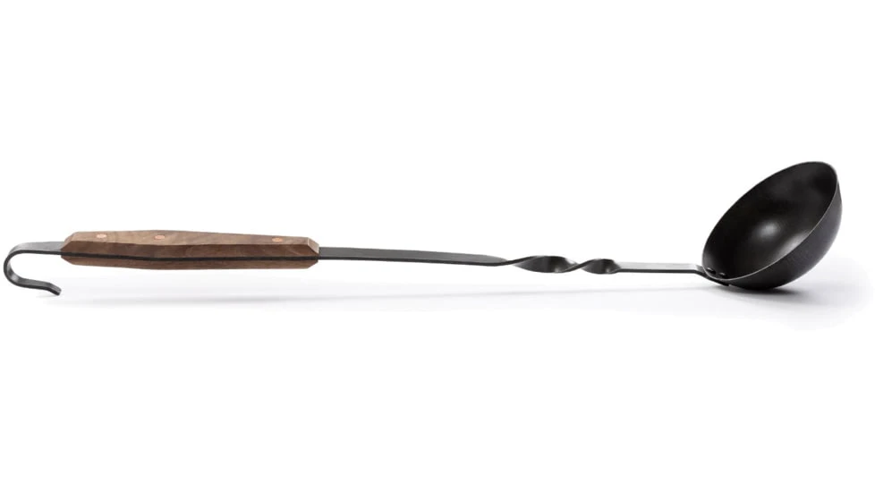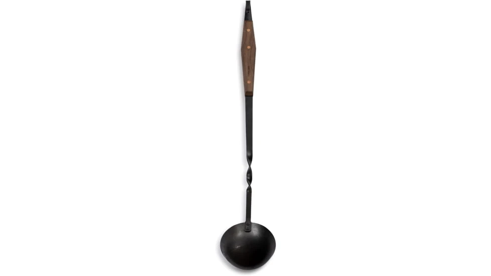 Pour sauces, soups, and stews. Designed to hang and work with our Cowboy Fire Pit Grill, this ladle is crafted with hand-forged stainless steel and fitted with a smooth, natural walnut handle that keeps cool over high heat. Longer than normal length allows for comfort and safety when working around fire and hot coals.![]()