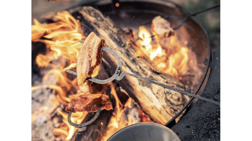 Slow down, find a seat, and enjoy the magic of an extended meal by the fire. Hand-tooled and forged with a beautiful antiqued blackened finish, these roasters are a camp necessity. The thoughtfully designed hook on the end allows for convenient hanging at camp or storage when not in use. Longer than normal length allows for comfort and safety when working around fire and hot coals.![]()