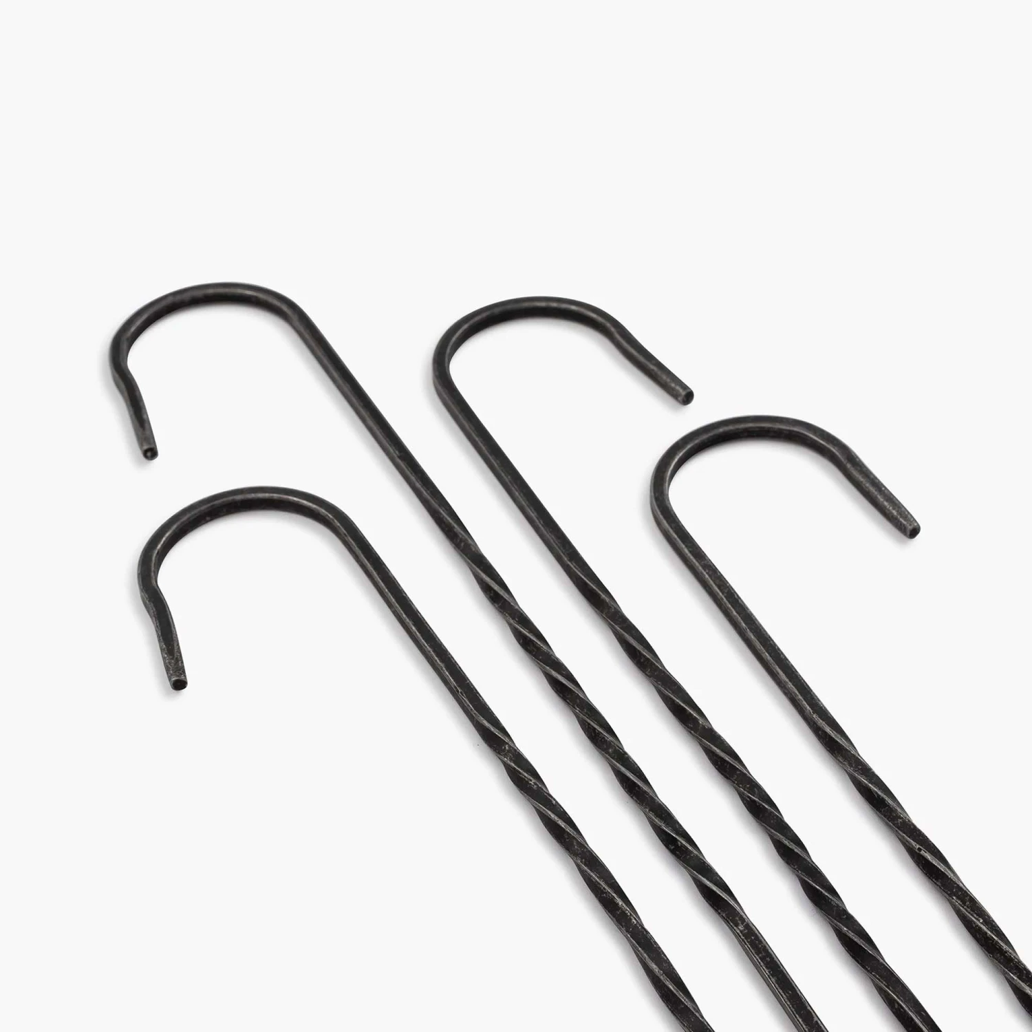 Perfect kebabs, sausages, chicken sate, and grilled veggies every time. Hand-tooled and forged with a beautiful antiqued blackened finish, these skewers are a BBQ and open-fire necessity. The thoughtfully designed hook on the end allows for convenient hanging and storage when not in use. Simple, delicious meals await.
