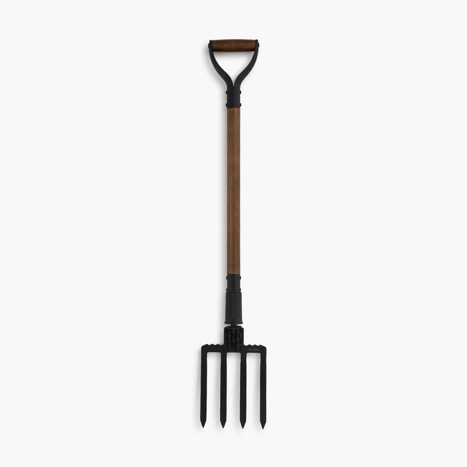 A spading fork is an excellent tool for scooping, lifting, and tossing hay or compost, but it also works well to aerate the soil, pry small roots, and move mulch in the garden or on the farm. Our Folding Spading Fork features an easy-twist lock to collapse the head for more compact storage and creates unique positioning for trenching and tilling. The Manganese hand-forged steel fork stays sharp, and the durable beechwood handle fits comfortably in hand for hours of rugged work.