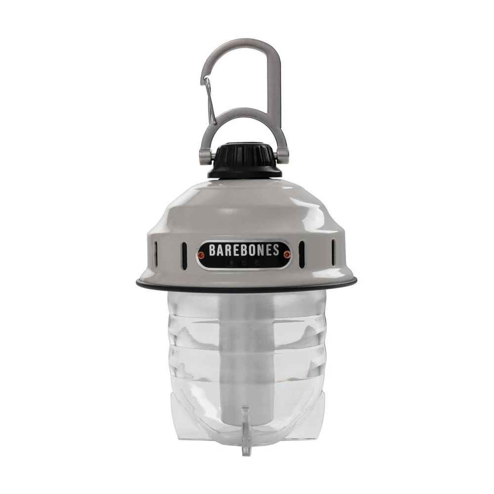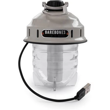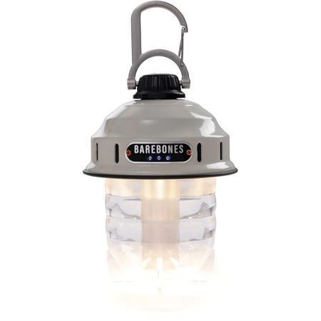 Model – BARE237. Barebones Living Beacon Hanging Lantern White. Dimensions: 3.75″ x 5″. Water resistant. Rechargeable. 3 Watt CREE LED. Modes: High (220 lumens, 3h runtime); Low (30 lumens, 200h runtime). Comes with 30″ charging cord. Color: Vintage white. Requires (1) 18650 battery (included). Stamped steel construction. Boxed. Made in China.