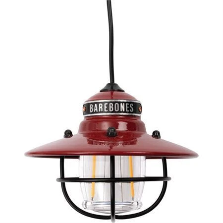 Model – BARE267. Edison String Lights Red. Water resistant. 1.6 Watt warm Edison-style LED bulbs. Modes: High (100 lumens); Low (35 lumens). 10′ cord. Carabiner for hanging. Rust-resistant powder-coated steel construction. Also works with Barebones portable charger (not included). 4 inch spacing between each light. Color: Red. Boxed. Made in China
