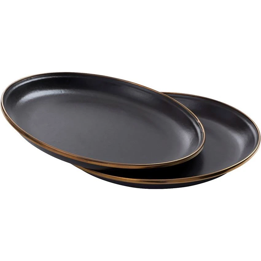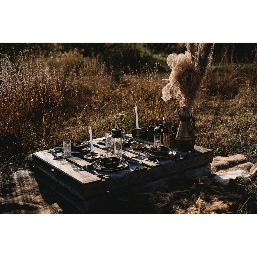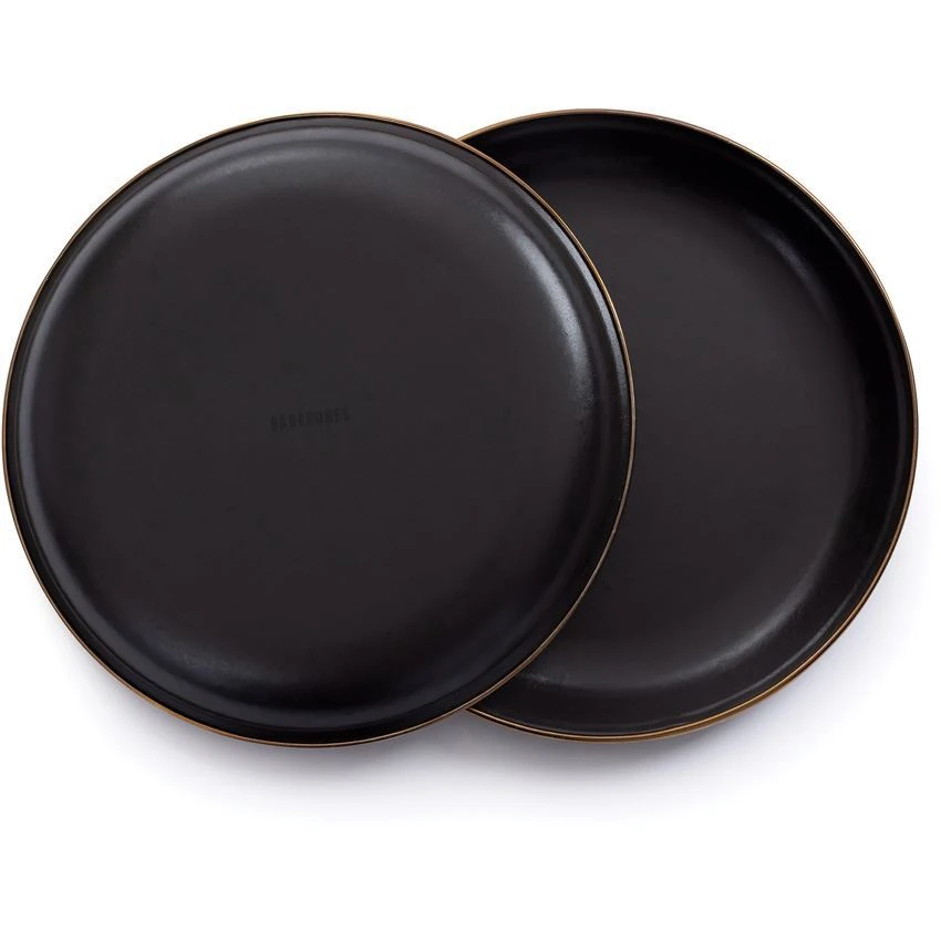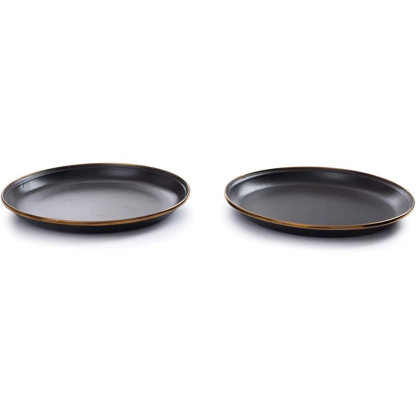 Model – BARE342. Barebones Living Enamel Salad Plate Set. Dimensions: 8″ x 8″ x 0.88″. Dishwasher safe. Set of two. Hand-finished baked stainless trim creating a copper-like patina finish. Steel core with charcoal enamel finish. Vintage-inspired design. Slight variations in color on rim are expected. Hand wash recommended. Do not microwave. Boxed with hanging tab. Made in China.