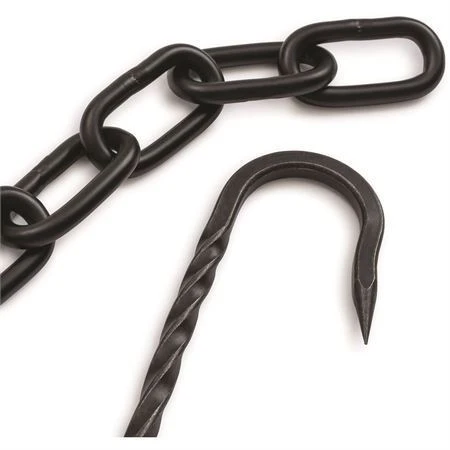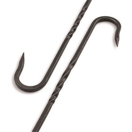 Model -BARE474. Cowboy Grill S-Hook Set. Includes: (2) Large hooks; (2) Small hooks; (2) Chains, 50cm. Blackened and tumbled stainless construction. Can be used to hang meats, veggies, or cast iron directly over a fire. Easy to clean and store. Boxed with hanging tab. Made in China.