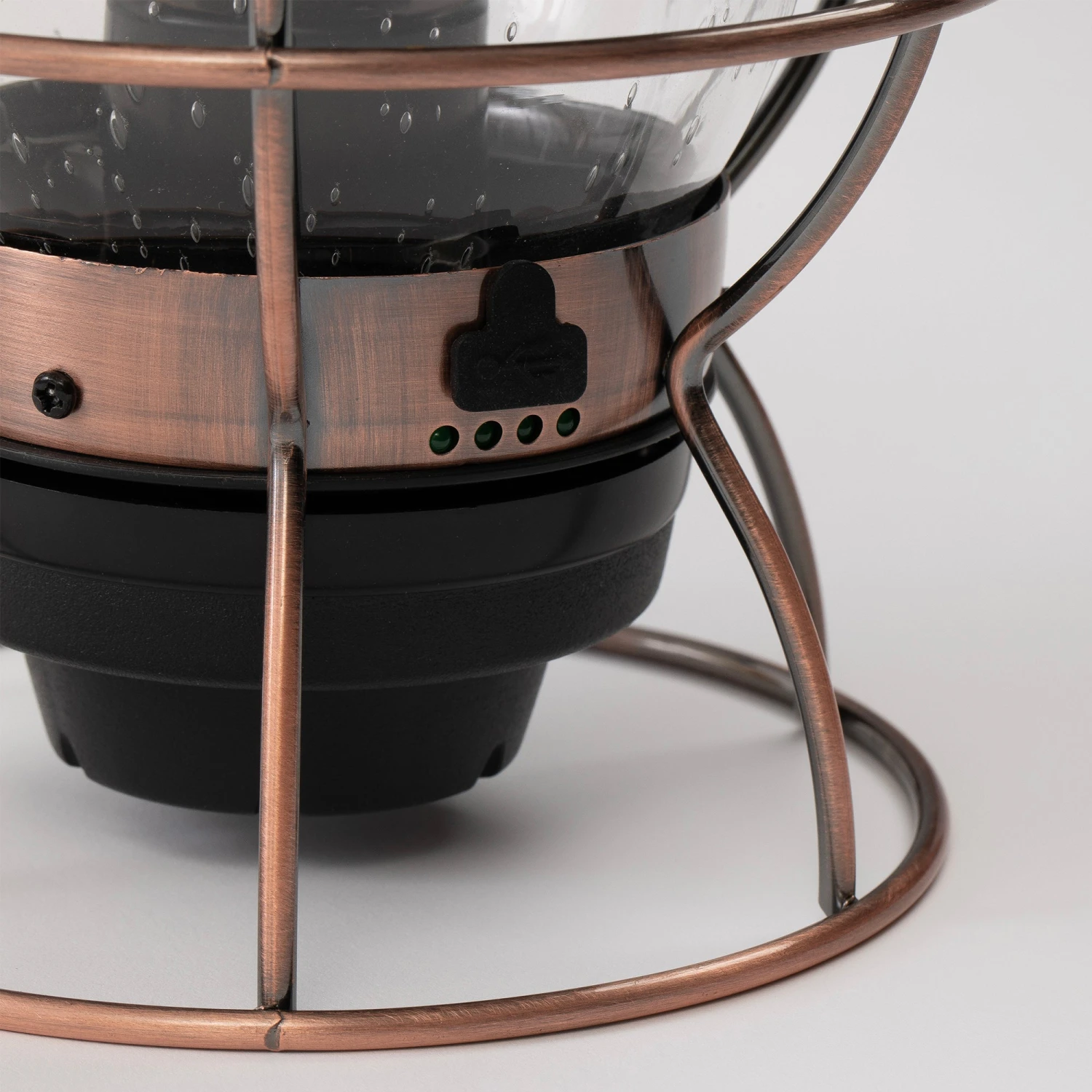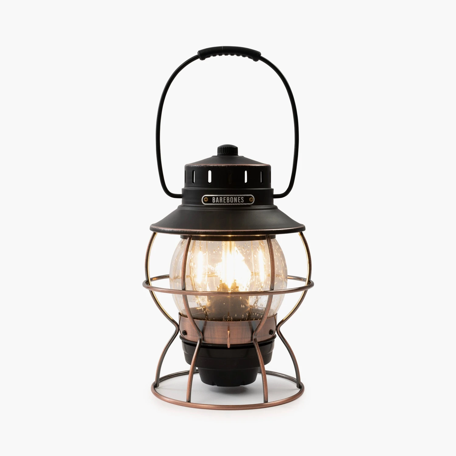 A modern twist on an antique and well-loved Union Pacific vintage lantern. Gorgeous seeded glass and copper accents make this a unique light for a curated dinner table or at camp. High-tech and functional, this railroad lantern utilizes battery or USB with a run time of 100+ hours on low or 3.5 hours on high. Adjustable brightness LED Edison-style bulb provides a classic warming glow perfect for every occasion.