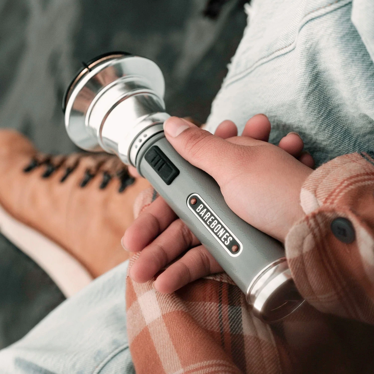 Next in line is the Railroad Lantern, a modern take on the beloved Union Pacific vintage lantern. Its stunning seeded glass and copper accents make it a captivating centerpiece for any occasion, be it a curated dinner table or a cozy campsite. Powered by batteries or USB, this lantern shines for over 100 hours on low or 3.5 hours on high. The adjustable brightness LED Edison-style bulb casts a warm, inviting glow that sets the perfect mood.
