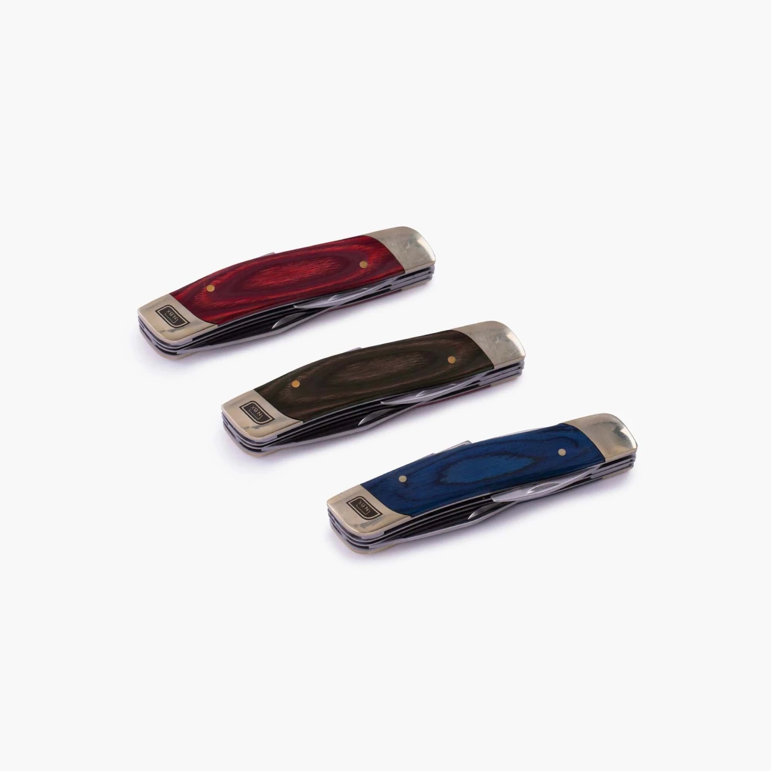 The NoBox Multi-Tool features 6-tools-in-1, ready to help you in almost any situation. Pocket knife features five spring action blades made from 50crmov15 stainless steel: 2.75″ all-purpose utility blade, 2″ carving blade, 3.25″ curved wood saw, combination screwdriver/bottle opener, and pair of scissors. All blades come together in a stabilized wooden and brass handle. This pocket knife multi-tool takes usability to the next level and fits comfortably and flexibly in your hand. Choose from Natural Wood, Blue Wood, or Red Wood.